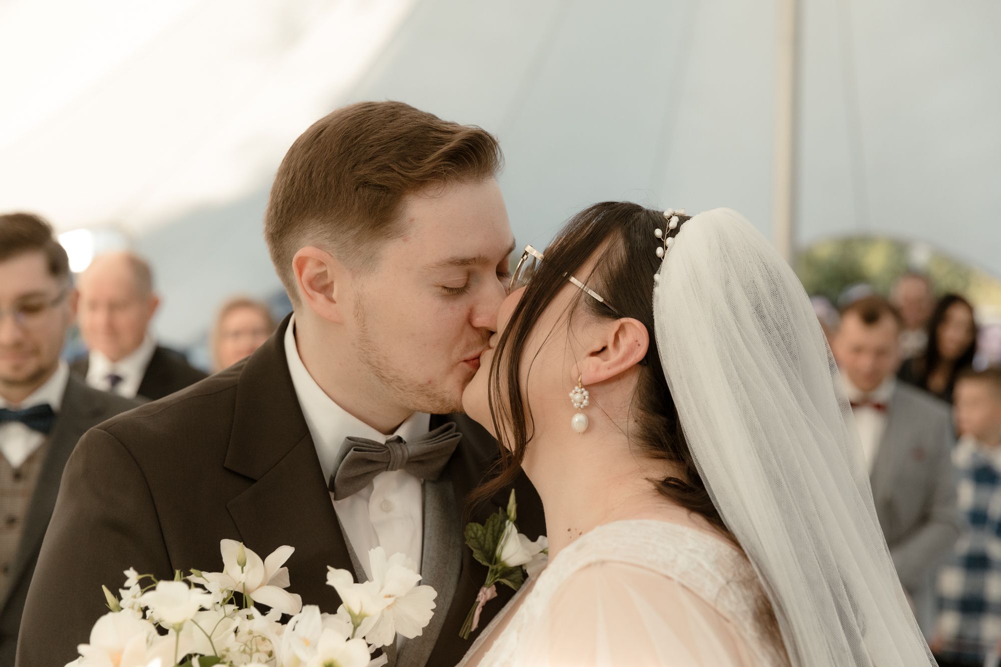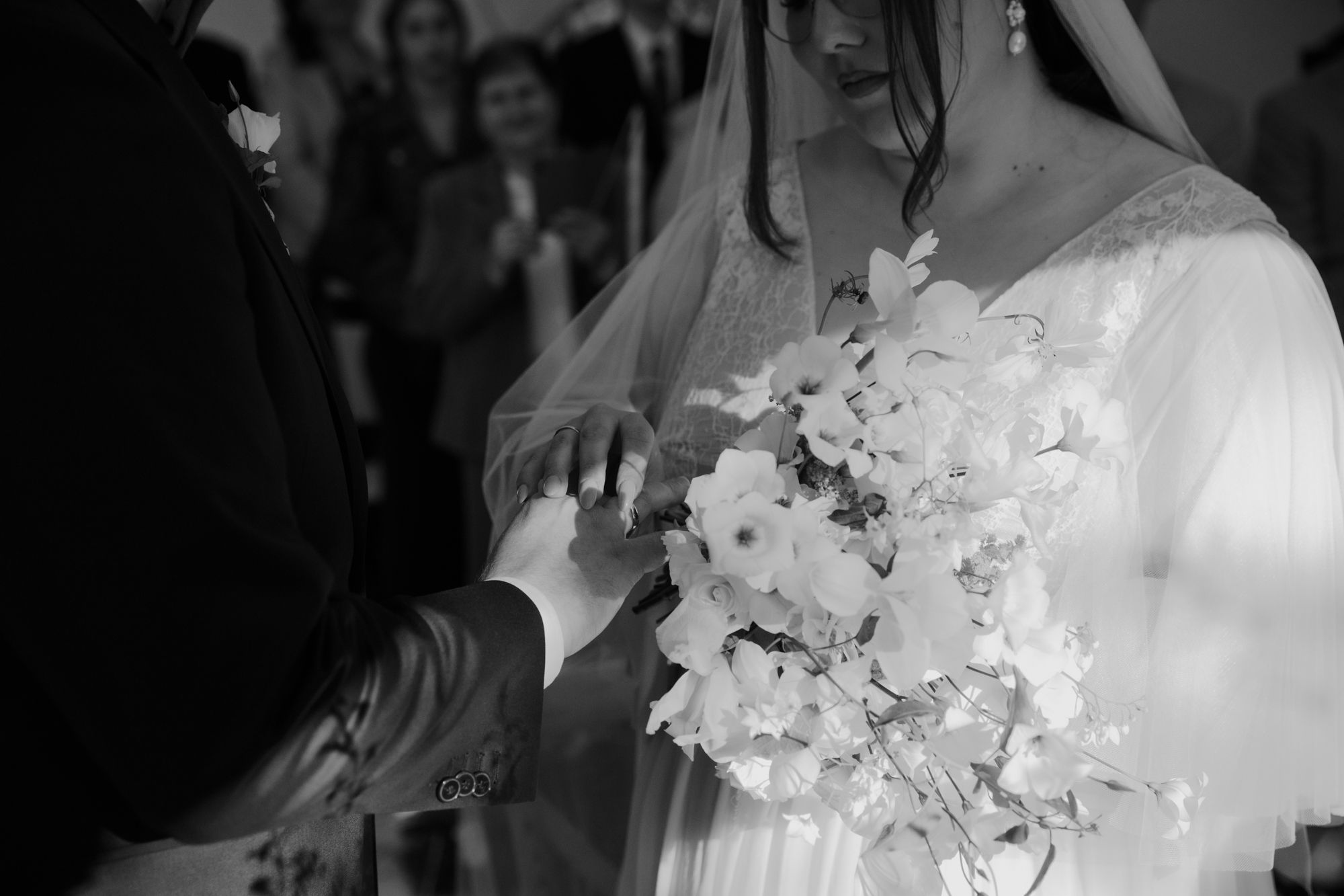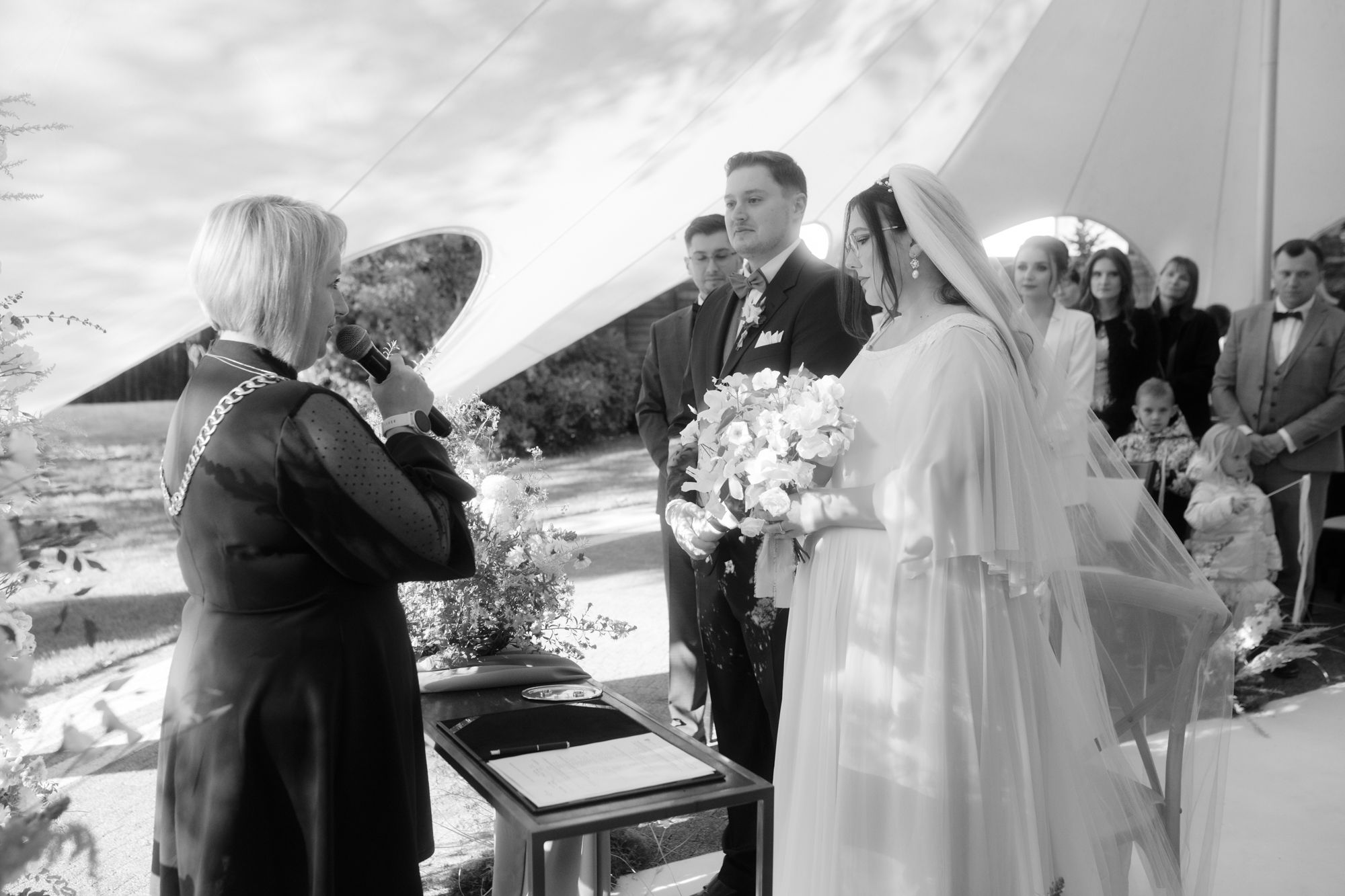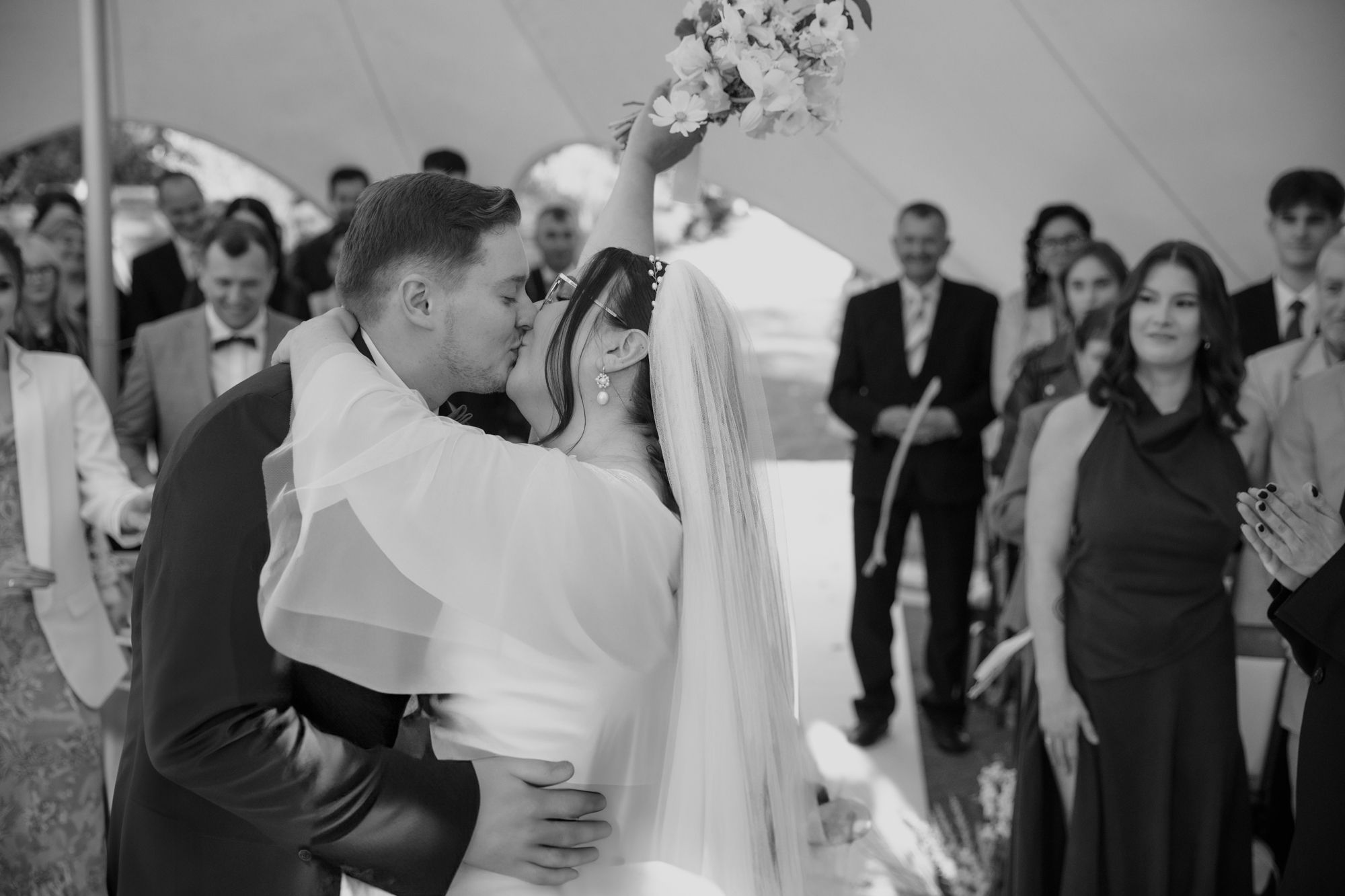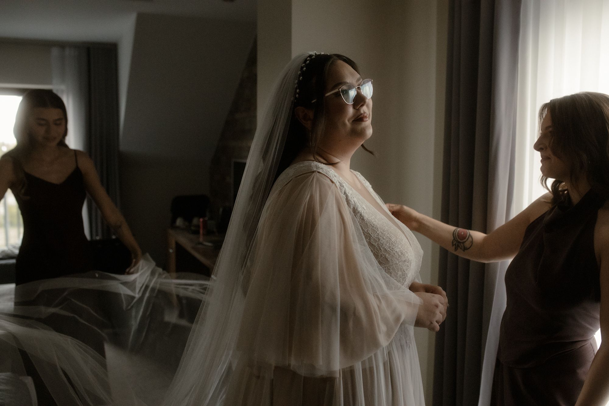 Justyna i Rafał uwielbiają styl vintage, co idealnie odzwierciedlało dekoracje i ich stroje – pełne klasy, subtelności i charakteru. Rafał na początku był lekko spięty, widać było, że przeżywa każdą chwilę, ale szybko odnalazł spokój przy swojej ukochanej. Justyna, choć bardzo przejęta, z wdziękiem radziła sobie z każdym wyzwaniem tego dnia. Razem tworzyli duet pełen wsparcia i uważności – ich spojrzenia mówiły więcej niż tysiąc słów. Byli dla siebie nie tylko miłością, ale i oparciem, i to właśnie te chwile wypełniły ich dzień magią.